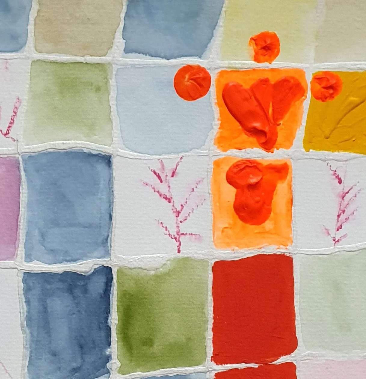 ein Aufeinandertreffen. Überwältigende Intensität, eine Welle von Formen und Farbe — und daneben die sanfte Ordnung, die hilft, wieder Luft zu holen.