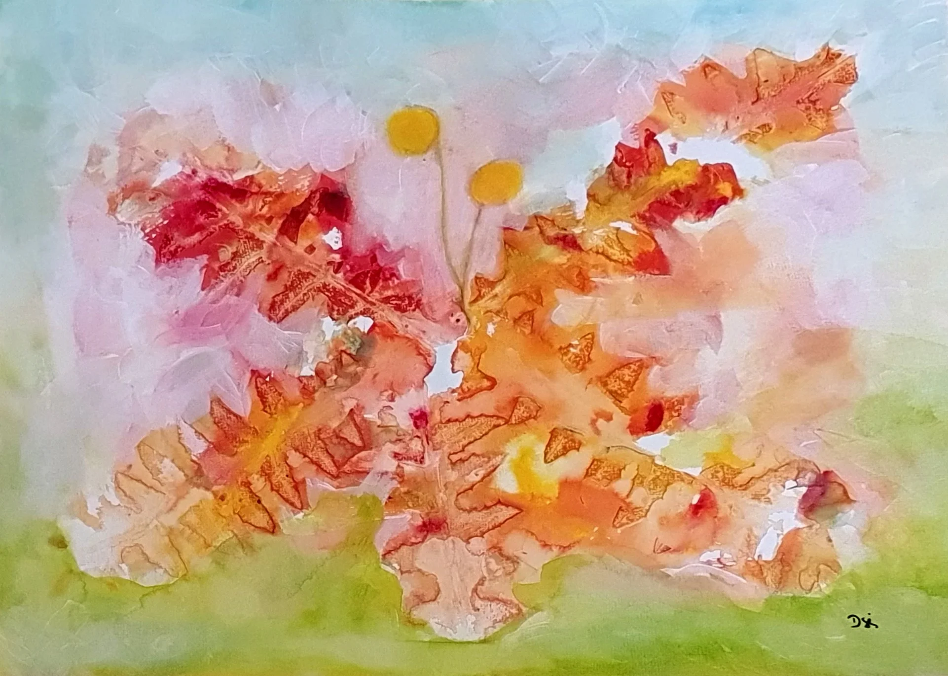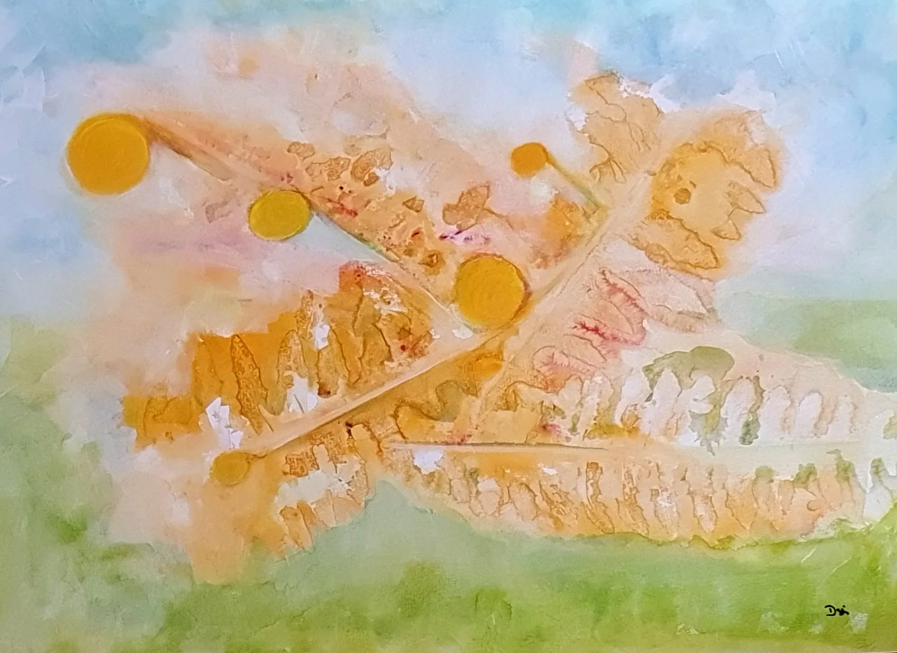 Die Serie Shine your own way besteht aus drei Aquarellen, deren Basis Blattabdrücke der Gänsedistel sind.